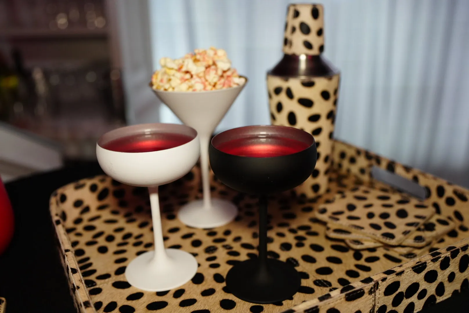 - Fashionista: Freeze-dried strawberry and banana-infused Patron Añejo Cristalino Tequila with banana liqueur, agave nectar, and fresh lime juice clarified with milk and chilled. Served with strawberry shortcake popcorn