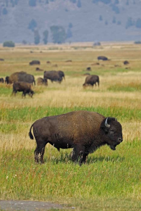 Black and grizzly bears have been known to frequent the area, and herds of bison (as many as two-hundred heads) roam the Antelope Flats plateau high above the Snake River.