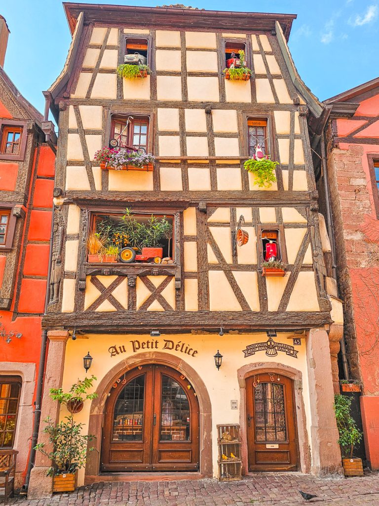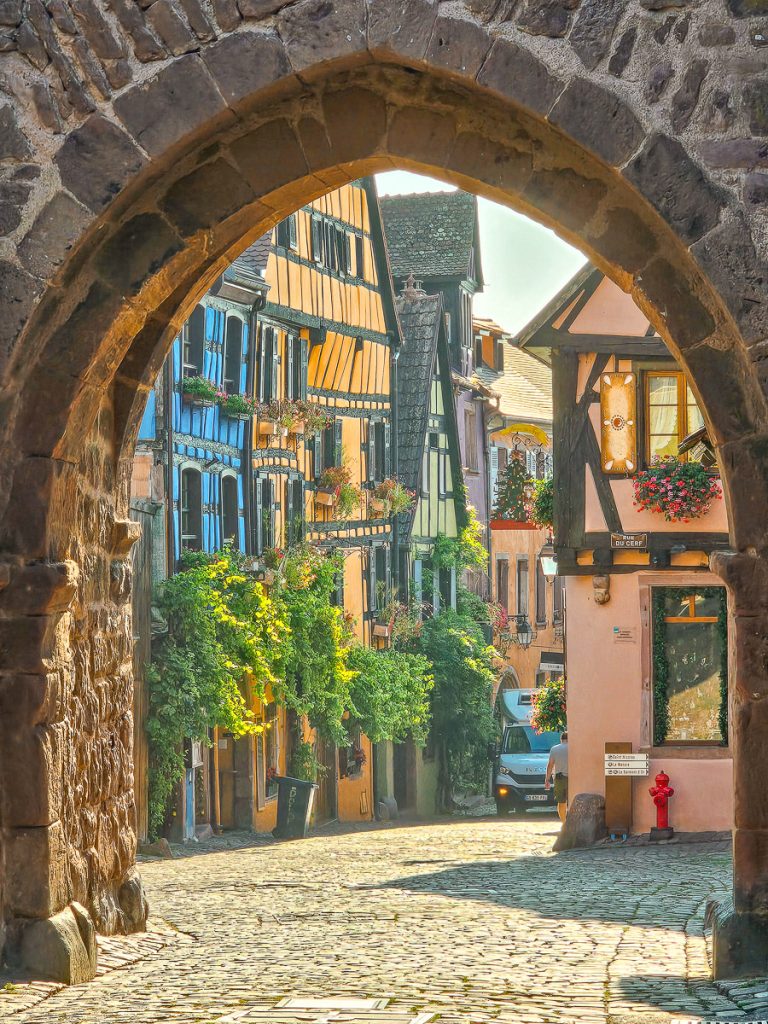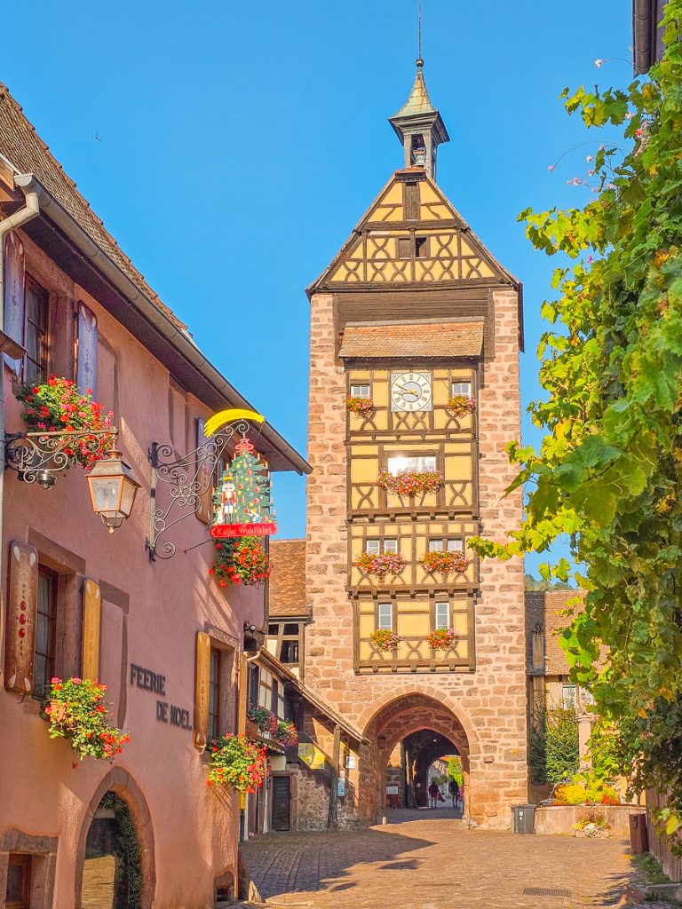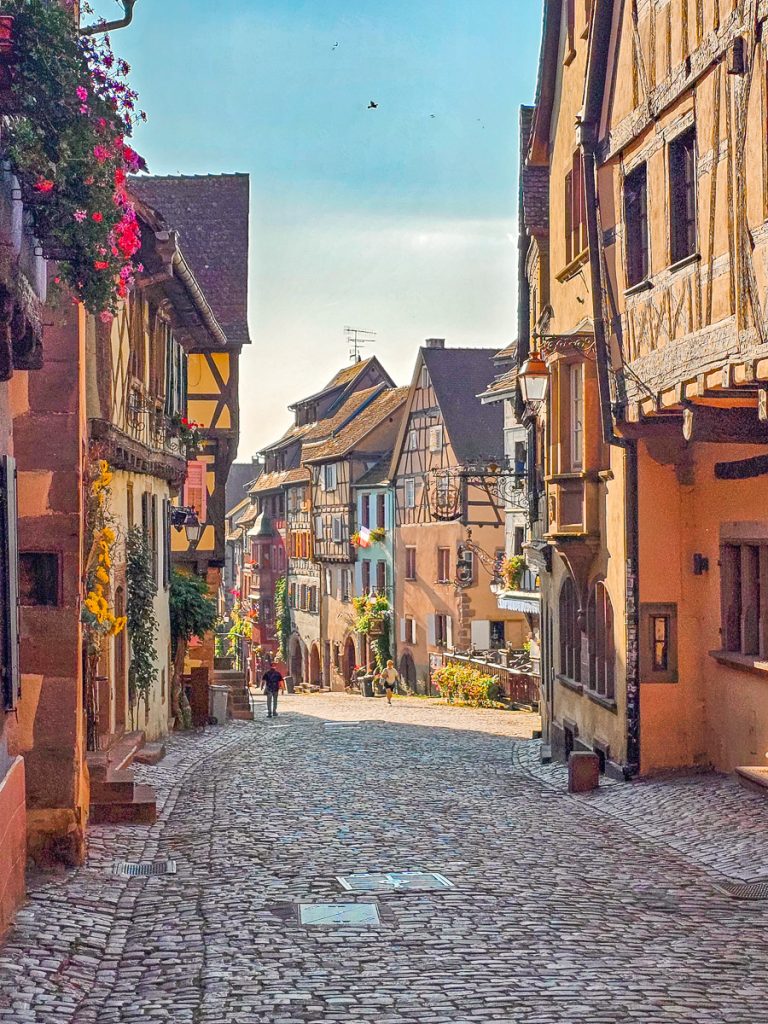 With all the hallmarks of a quintessential Alsatian village—colorful half-timbered houses, flowers spilling over window boxes, picturesque alleyways, and a beautiful main street— Riquewihr is one of the most adorable spots in France.