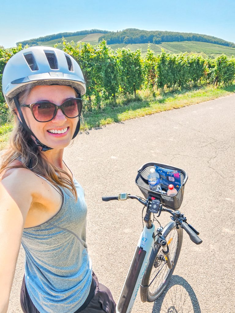 I rented a bike in Riquewihr from Le Vélo Libre , a 24/7 self-service e-bike rental company that allows you to rent bikes for any length of time at any time of day. I also talked to the tourism office to get suggestions on where to bike, and the whole experience was amazing.