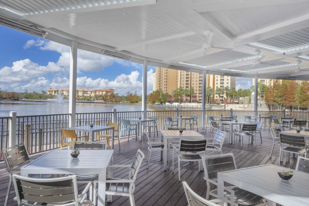 For our last night, we ate al fresco overlooking the lake at the newly-renovated Back Bay Bar & Grill (the other onsite option is the more upscale Deep Blu Seafood & Grill). Guests can also order food and drinks from Back Back Bar & Grill poolside. For picky eaters, it has a standard kids’ menu with staples such as chicken tenders and hot dogs. There are shareable plates, such as Bay Back jumbo wings or chips and fire-roasted salsa, salad options such as a Buddha bowl, and handhelds such as the Bay Back fish sandwich.