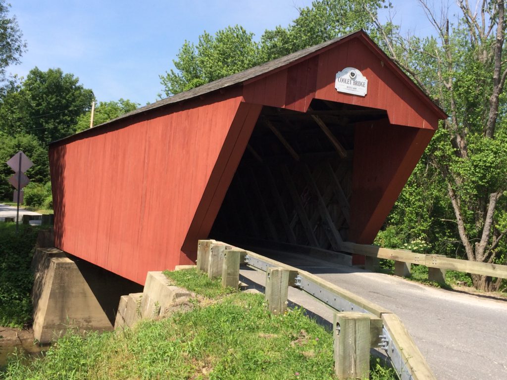 The Cooley Covered Bridge spans 60 feet and crosses the Furnace Brook. It was built in 1849 and is listed on the National Register of Historic Places.