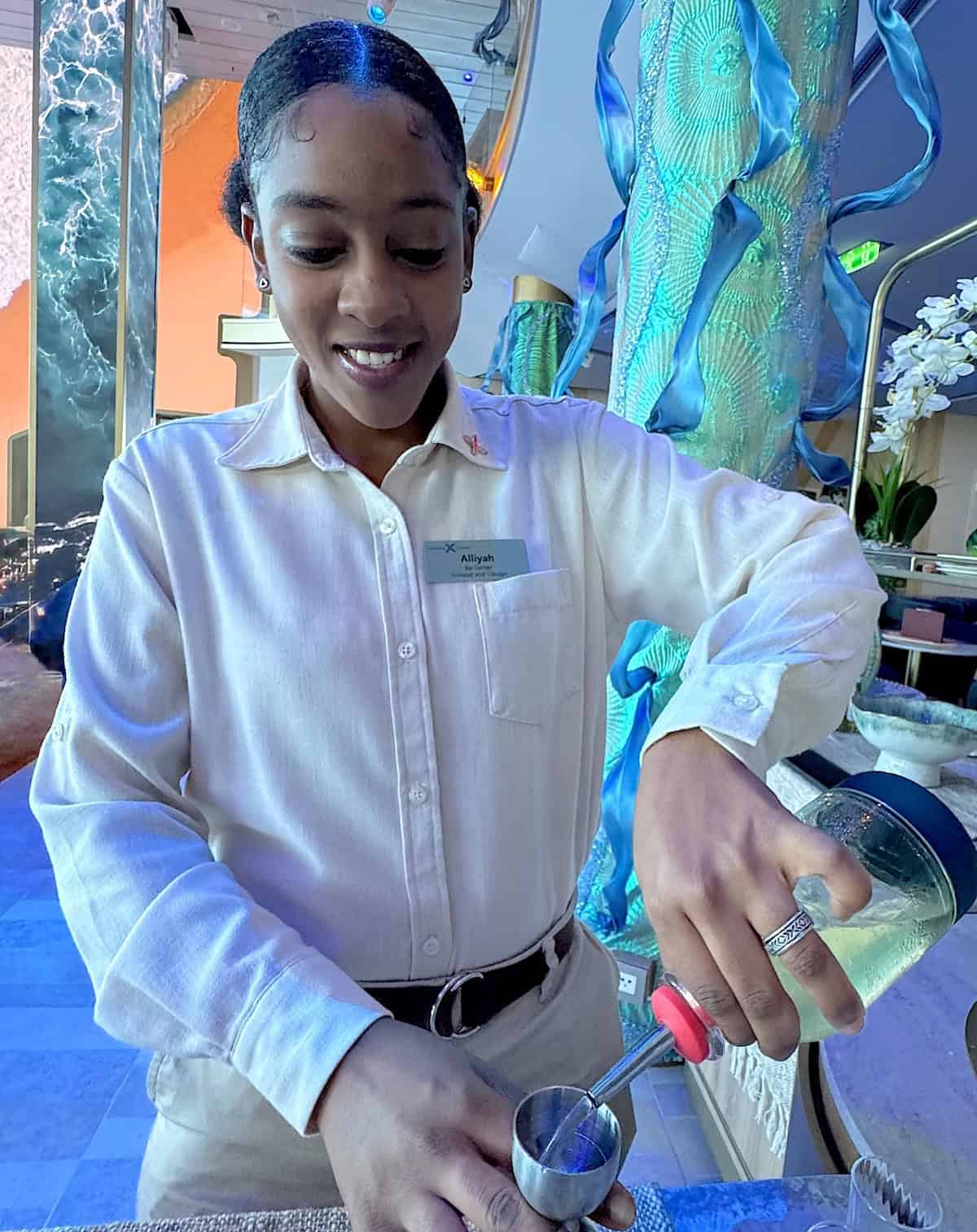 During her two-day trip, Sheckler Finch experienced the official naming ceremony, departing from Fort Lauderdale without any specific destination or shore excursions. Instead, she enjoyed the beauty of the open ocean and discovered what the Xcel has to offer.