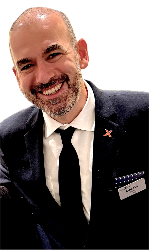The Xcel’s captain, Kyriakos Matragkas, is affectionately known as “Captain Kirk.” He adopted the nickname early in his career due to the challenge of pronouncing his Greek name. Born in Piraeus, Greece, Matragkas grew up near the Mediterranean Sea, influenced by a family of seafarers. His father was a ship captain, and young Kyriakos often accompanied him on sailing journeys. After graduating from the marine academy in Hydra, he joined Celebrity Cruises and now brings his love for snowboarding, reading, and music to the ship.